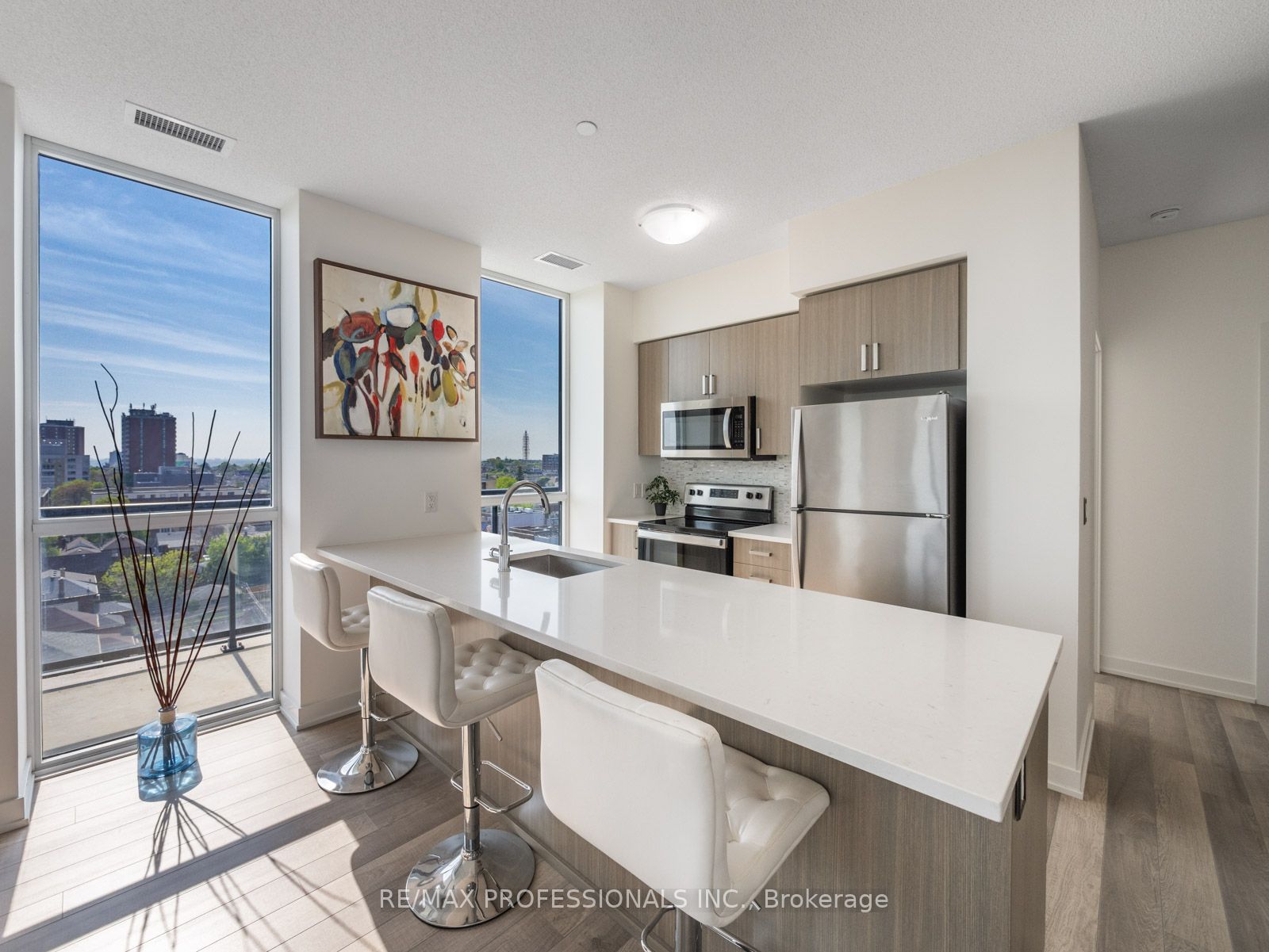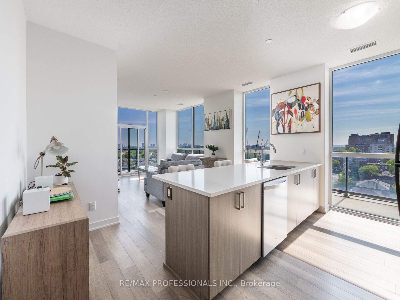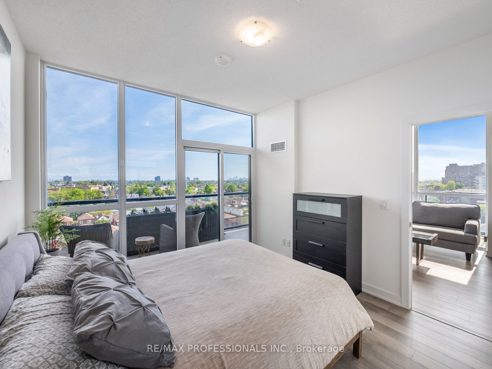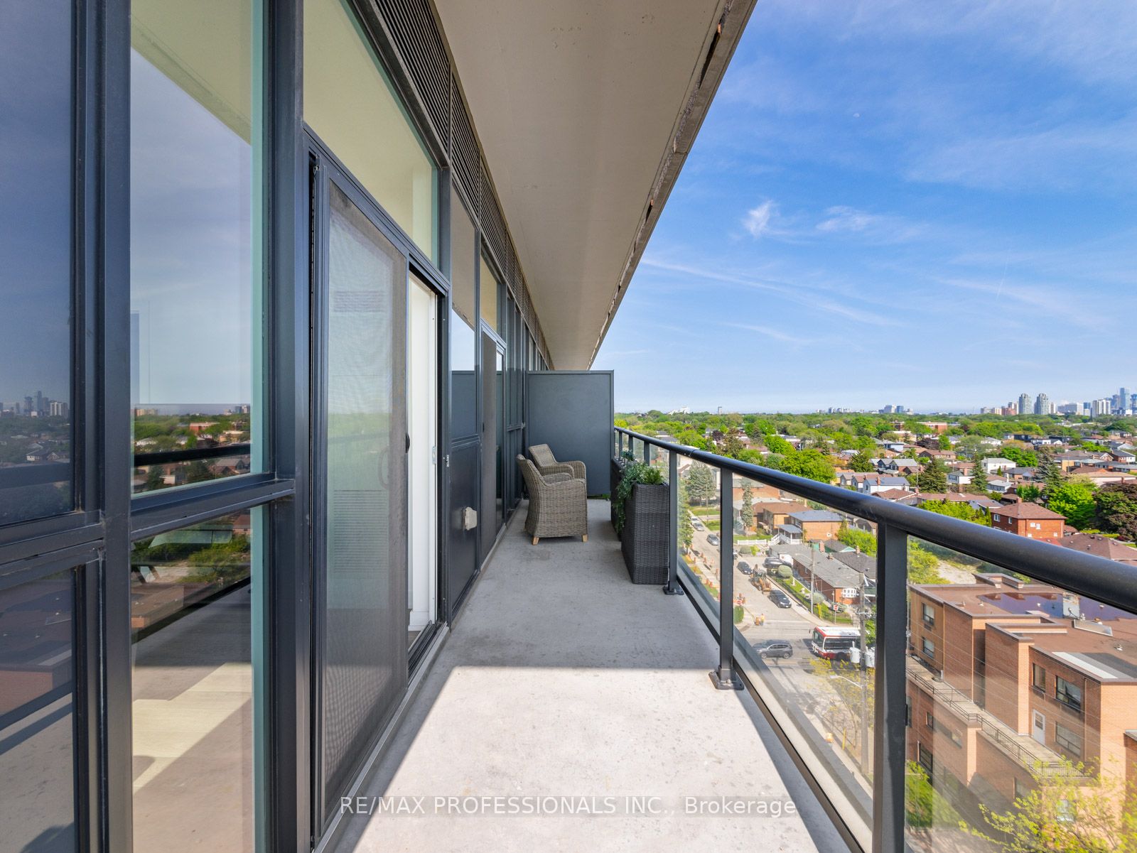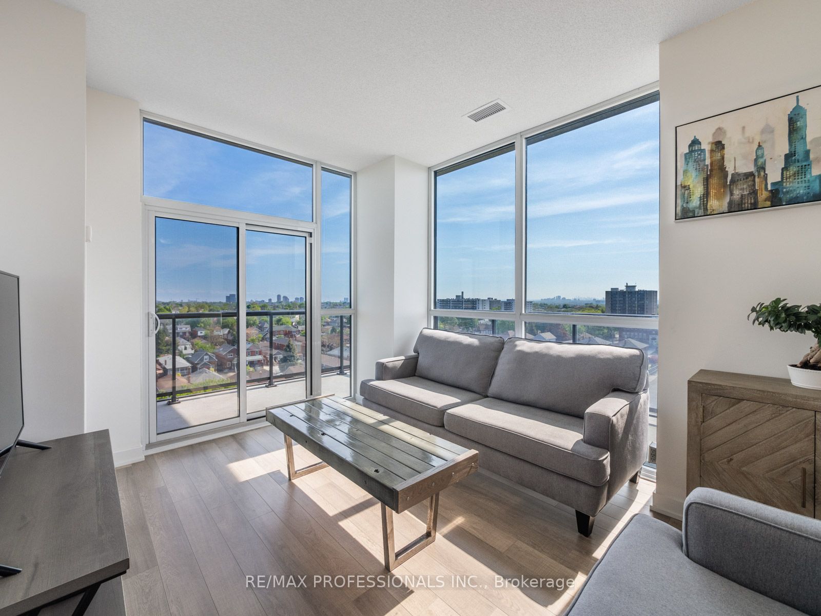 Step into your sanctuary where every sunrise/sunset paints your world with breathtaking hues in this stunning, sun-filled corner unit. Sprawling wrap-around patio offering serene views of lush greenery and the Toronto skyline, this 2-bed plus den, 2-bath haven exudes tranquility and elegance. Immerse yourself in luxury with custom upgrades; quartz kitchen, engineered hardwood, and charming dining area. Pamper yourself in the spa-like ensuite bath featuring a glass shower, and revel in the convenience of in-suite laundry and ample storage. Nestled in a vibrant community, enjoy easy access to transit, trendy cafes, and picturesque parks, with the LRT Oakwood Station just a steps away. Indulge in unparalleled amenities including 24hr concierge, party room w/chef’s kitchen, fitness/yoga facilities, stunning outdoor rooftop oasis w/BBQs and pet-friendly amenities. Storage and parking included, seize this opportunity to own the best value in the city before it’s too late.