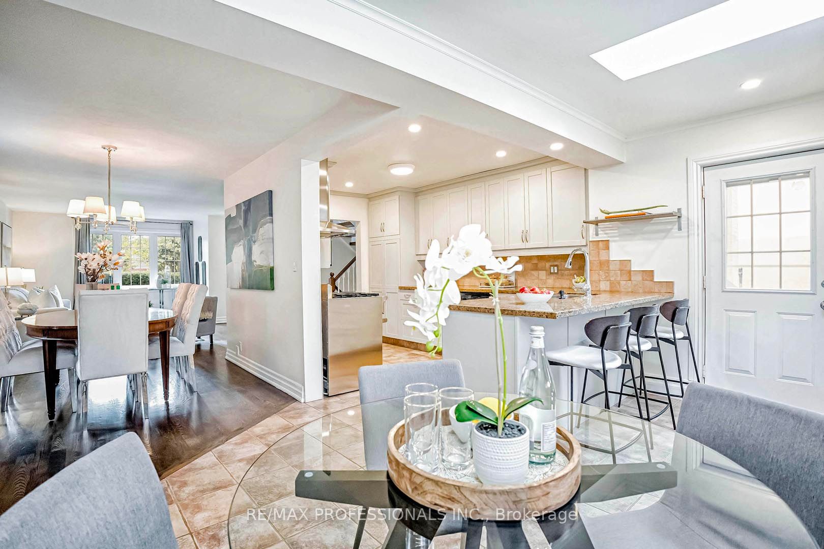 Welcome to this beautifully renovated, bright, spacious & immaculate 4 level Side-split home on a quiet, low-traffic street in Etobicoke. The large eat-in kitchen is a chefs dream, boasting upscale appliances incl a Miele vegetable steamer, Wolf gas stove, & elegant granite counters! The home boasts 2 Skylights which add even more light to the space & beautiful hardwood flooring throughout! The large 2nd-level bedrm was originally two rooms. Can be converted back to create a 5th bedroom! 2 beautifully renovated bathrms! Top level bathroom features spa-like glass shower, soft close cabinetry, & undermount floor lighting! The finished basement boasts large windows, B/I cabinet, & stunning stone gas fireplace! Step out from the kitchen to the backyard oasis with beautifully landscaped gardens & large detached garage! Nestled on a generous 50 ft lot in the lovely neighbourhood of Kingsview village-The Westway, this home offers luxury & comfort ready for you to move in & enjoy!