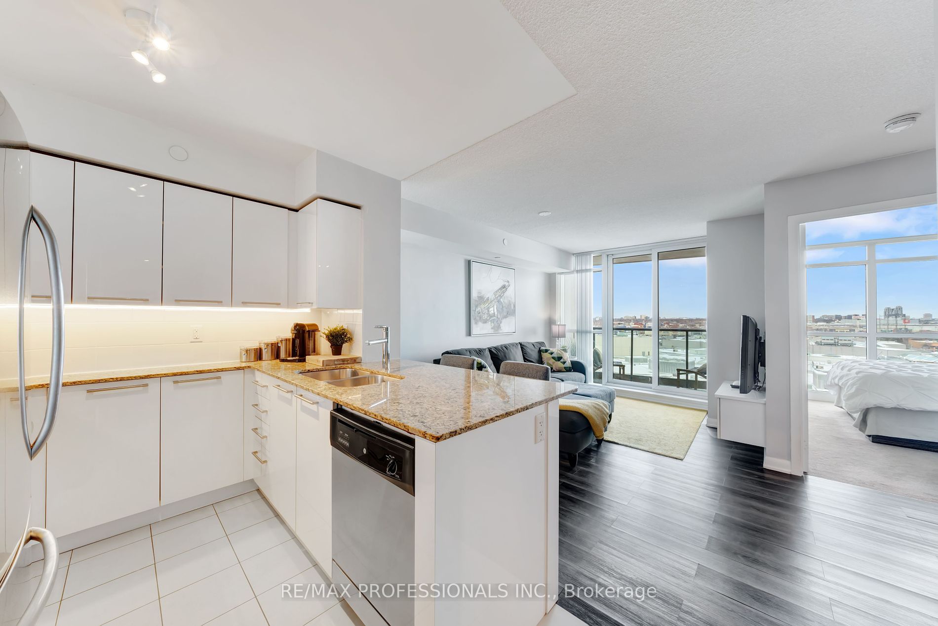 Great Location! Conveniently Right Across Sherway Gardens Mall & Trillium Hospital. This 1 Bed + Den Unit Features Open Concept Living With Hardwood Floors, Stainless Steel Appliances, Granite Countertop & Breakfast Bar.