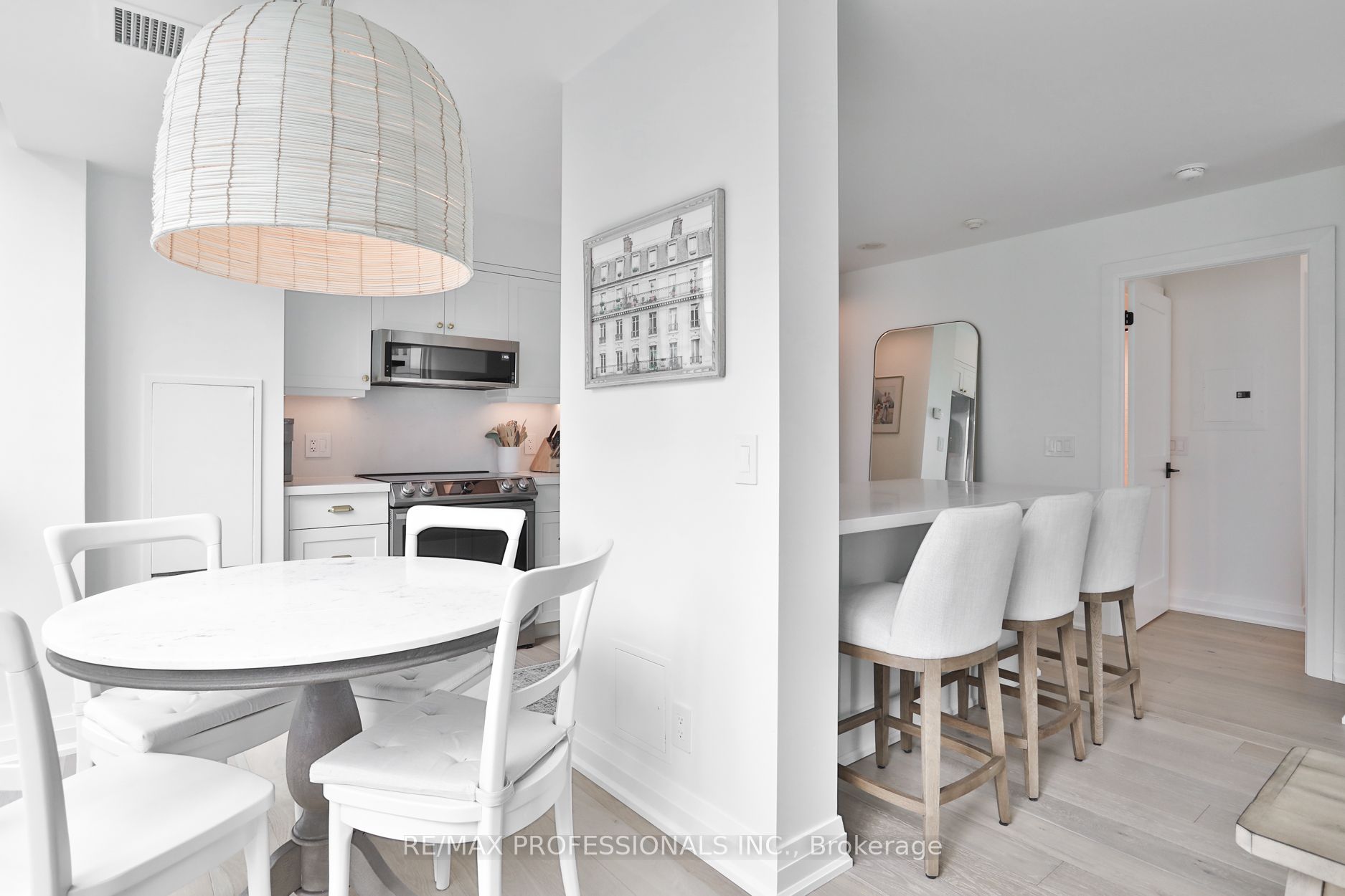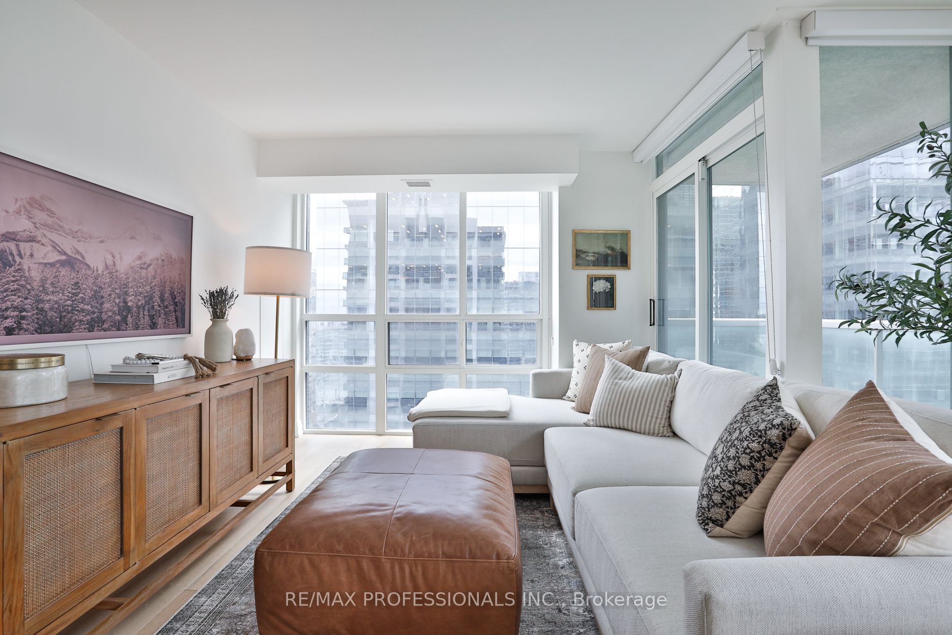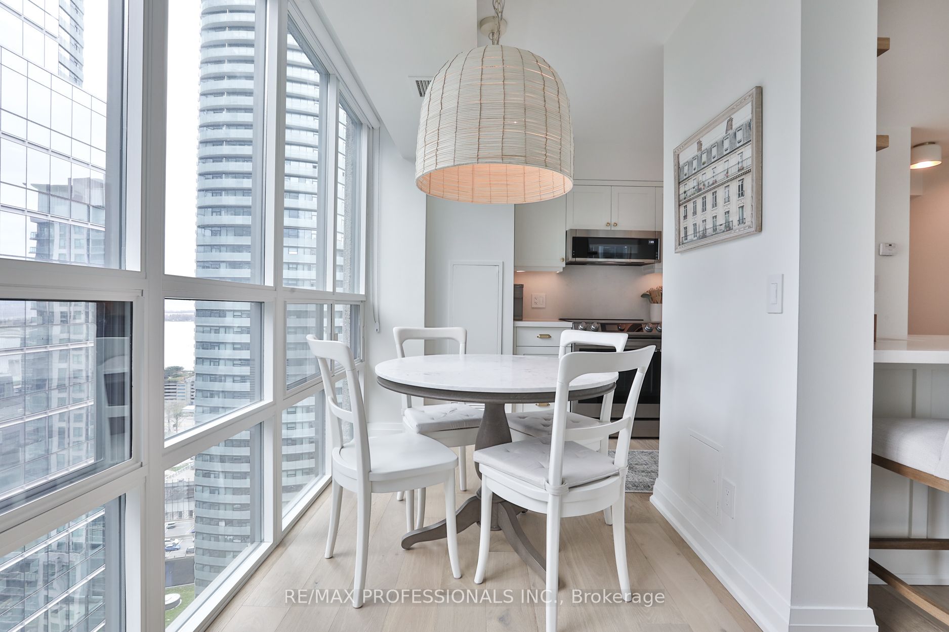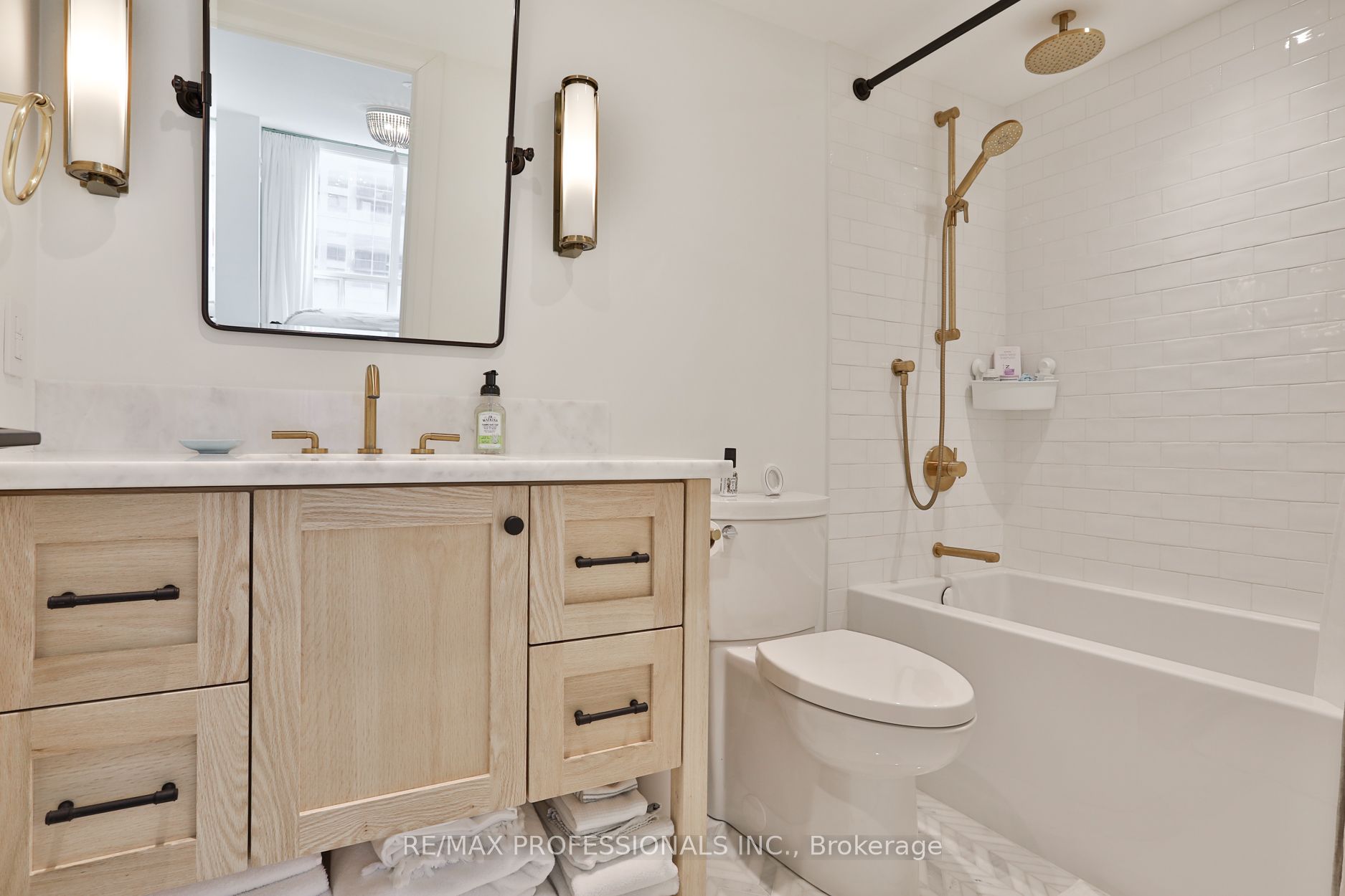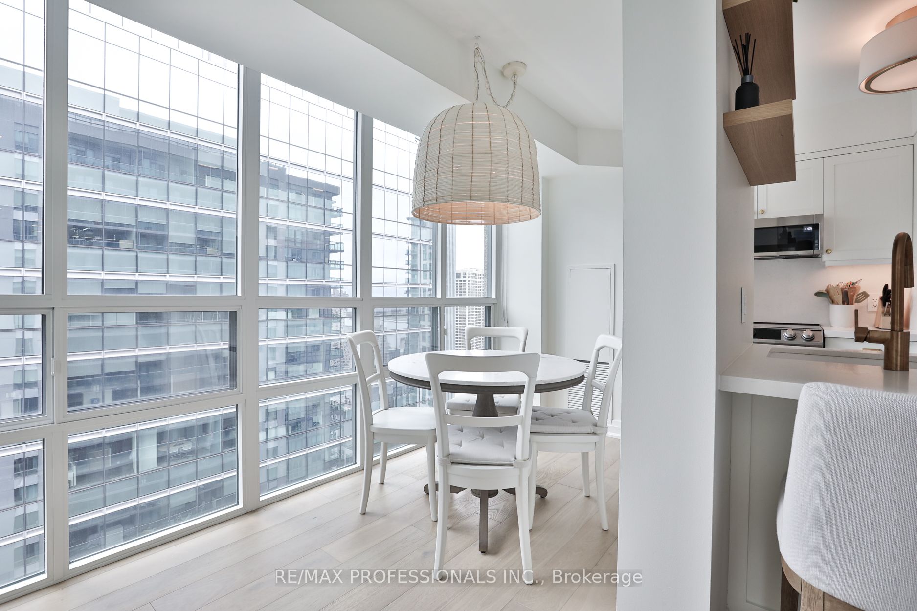 Welcome to Infinity 1, an upscale residence nestled in the heart of a vibrant urban landscape! This exceptional location places you mere steps away from Union Station, Scotiabank Arena, Rogers Centre, the CN Tower, PATH Shopping, the Financial District, Waterfront/Harbourfront, an array of restaurants, grocery stores, and more. Presenting a stunning 885 square foot, 2-bedroom suite that has undergone a comprehensive renovation, showcasing sophisticated design elements and meticulous attention to detail. The bright and airy open-concept living space enjoys tons of natural light from floor-to-ceiling and wall-to-wall windows, and features gorgeous wide-plank flooring and custom roller blinds. Step onto the balcony to enjoy breathtaking city views! The gourmet kitchen, ideal for entertaining, is equipped with shaker cabinetry, top-of-the-line stainless steel appliances, and gleaming quartz countertops complete with a breakfast bar. Retreat to the tranquil primary bedroom including a double custom closet and a lux 4-piece ensuite bathroom featuring a deep soaker tub and designer finishes. The second bedroom, also boasting a double custom closet, and an additional 3-piece bathroom round out the floorplan. Twin double closets in the entry provide for ample storage. Don’t miss the opportunity to experience this fully turnkey unit firsthand! **All-inclusive maintenance fee = no additional utility bills! **