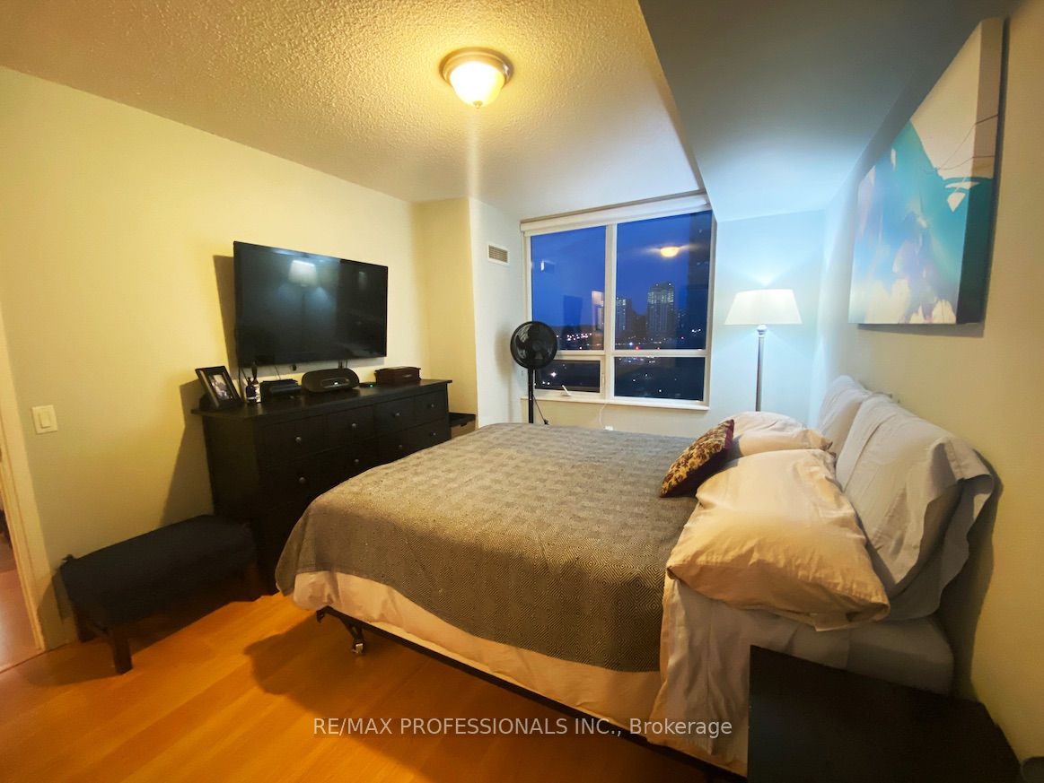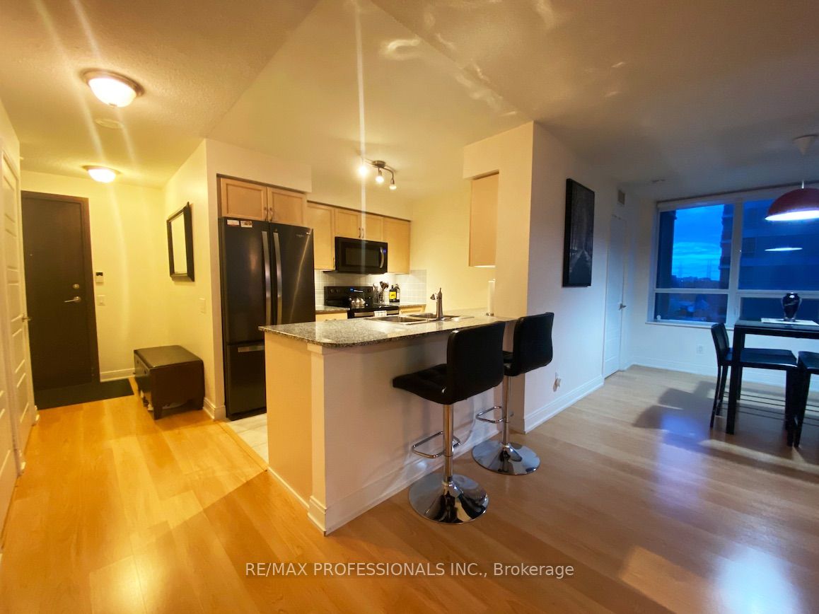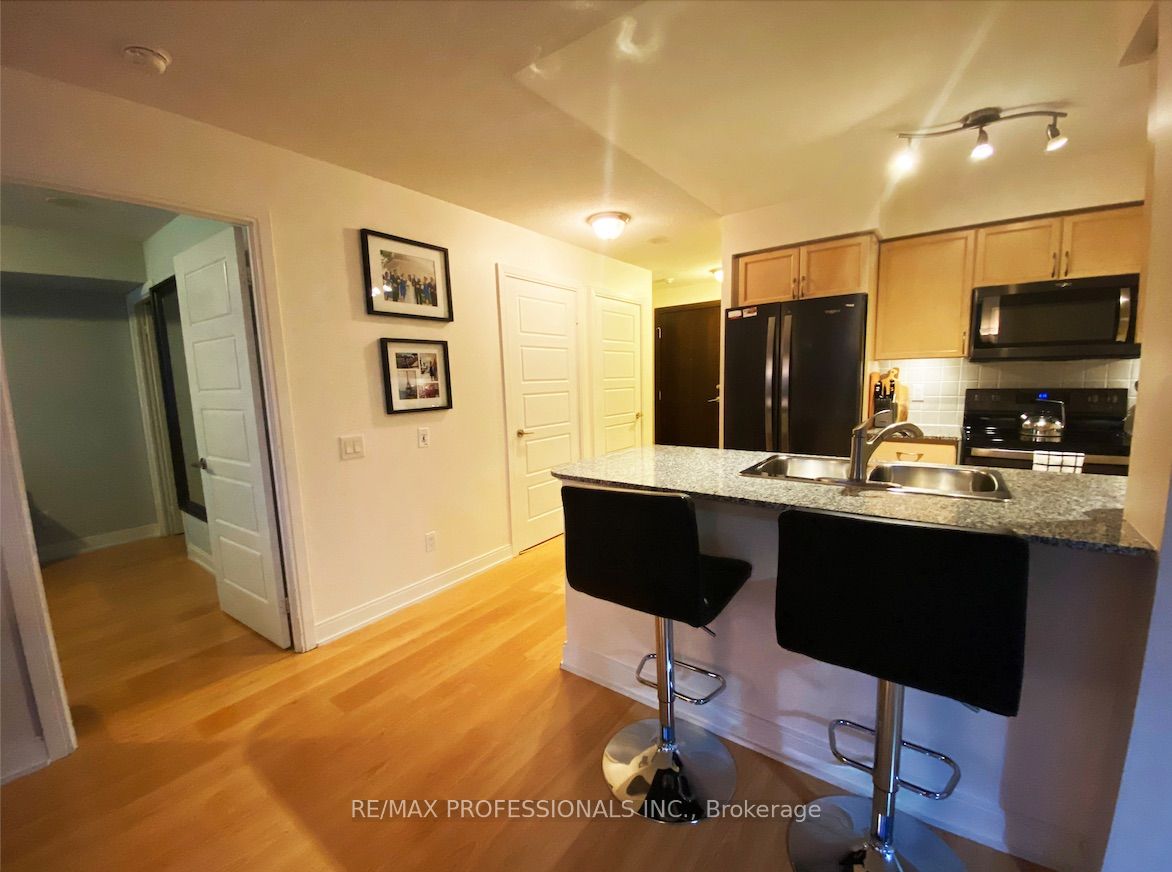 Great views, amenities and living. Comfort close to transit. Superb Layout and well taken care of-Corner North East Of The Building With A Beautiful View Of The City And 6 Points Park Area. Stellar Layout and actually large space for proper dining table.- A Spacious Living Room Enough Room For A Large Sectional-Breakfast Bar Off Of The Stylish Kitchen With An Overhang For A Few Stools And Cool Black Appliances. No Cookie Cutter Here – Both Bedrooms Are A Great Size With The Master Boasting A Walk-In Closet And A Ton Of Built-Ins For A Large Wardrobe. Second Bedroom Has A Double Closet With A Corner Window-An Amazing Spot For A Home Office Or Guest Bedroom. Gorgeous Laminate Floors Throughout-Cool Bathrooms With Ceramic Tiles/Nice Finishes/Walk Out From The Dining Room To A Good Size Balcony/ Very Bright Unit With A Ton Of Windows/Natural Light And More.