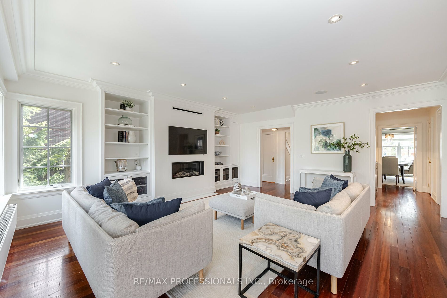 Stunning Lawrence Park Family Home situated on a mature private lot on an idyllic tree-lined street offers approx 4400SF of living space including the basement (per MPAC). The Main Level is terrific for family living & entertaining -Formal areas are gracious & grand offering a blend of elegance & seamless flow of modern utility. Gourmet Chef’s Kitchen features Large Centre Island, Butlers Pantry, Breakfast Area & W/O to lush prof landscaped garden/yard with multiple sitting areas. Enjoy a serene & tranquil setting in the back garden oasis. Infused with natural light the adjoining open concept Family-Room features cozy Gas F/Place & Built-In’s. The magnificent LR features a striking F/Place & offers views of the front & rear gardens while the elegant, formal DR is perfect for entertaining. The upper level offers 5 Bedrooms -Retreat to the luxurious Primary Bedroom with high ceiling, cozy F/Place, 2 Double Closets + W/In Closet & spa-inspired Ensuite Bath with Soaker Tub & Sep Shower. Lower level offers generous sized RecRoom w/ partially heated floors and a second area used as gym/games rooms, a 3 piece Bath and an abundance of Storage Space. Located near Toronto French School, Crescent School, Granite Club, Rosedale Golf Club, short walk to parks, TTC, Sunnybrook Hospital, and numerous Shops & Restaurants.