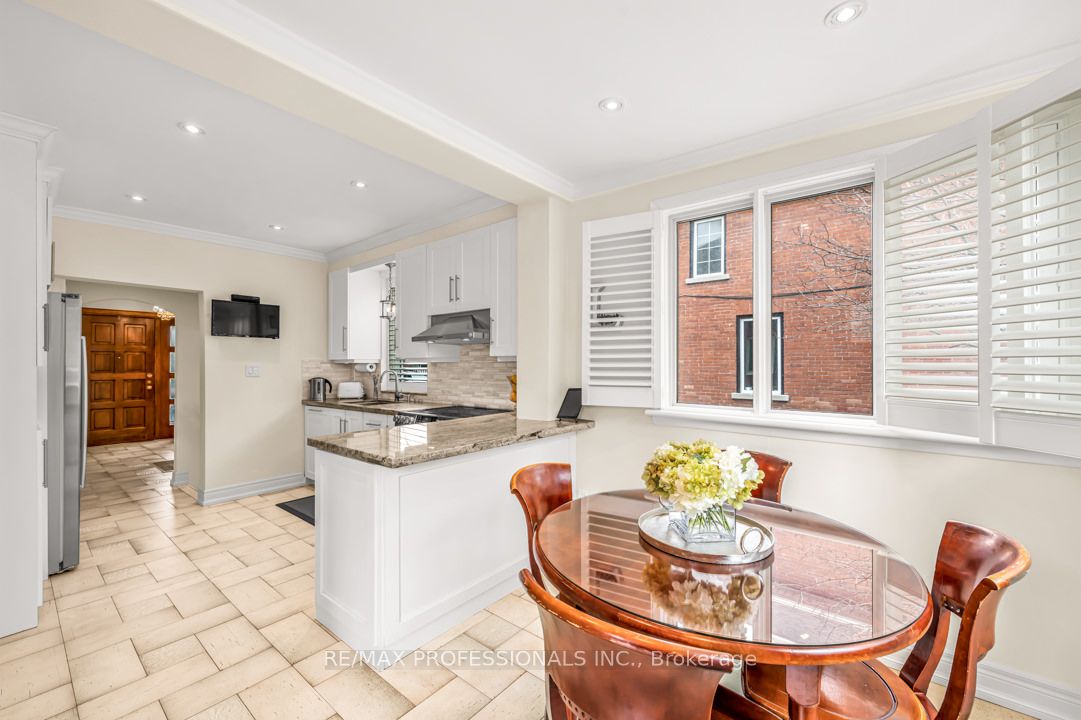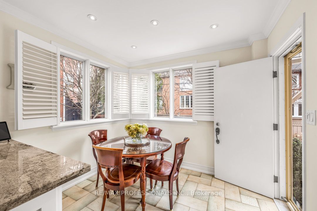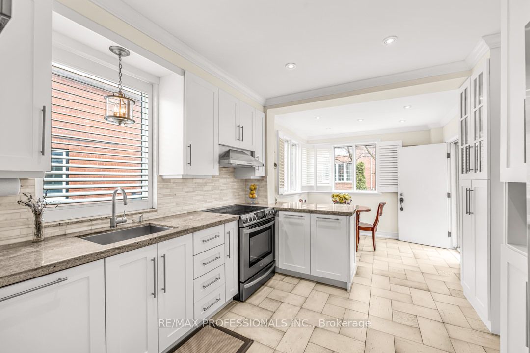 Elegant from every angle. A detached 4-bdrm residence w/ a private driveway (+pad parking) in the heart of Yonge/Eglinton. Live well while enjoying a pedestrian-friendly lifestyle. Natural stone walkways & landscaping lead towards the the wood door entrance. Inside, a refined foyer overlooks a grand living rm (stone fireplace) that is adjacent to the formal dining rm. (Ideal for large family gatherings or a simple night by the fire). Updated kit w/stone counters, marble b/s, & ss appliances. flowing into a sunlit breakfast area w/ walk-out to sundeck & fully landscaped yard. A haven for summer BBQs. Ascend the solid wooden staircase to find 4 bdrms, a lux 4-pce bath, and a south facing sunroom/home office. The lower level is a retreat unto itself, boasting a finished open-concept rec rm, storage, and a sleek 3-pce bath. Meticulously maintained, this home features California shutters, gleaming hardwood floors, and a seamless fusion of original architectural elements with modern upgrades.