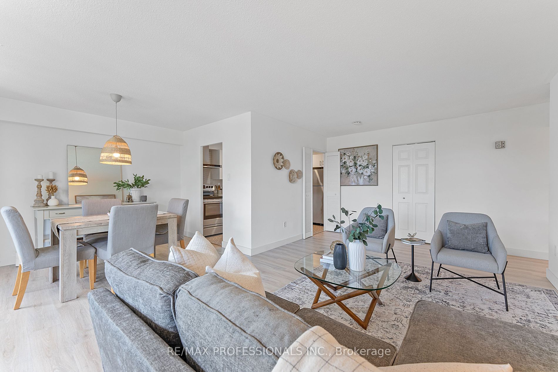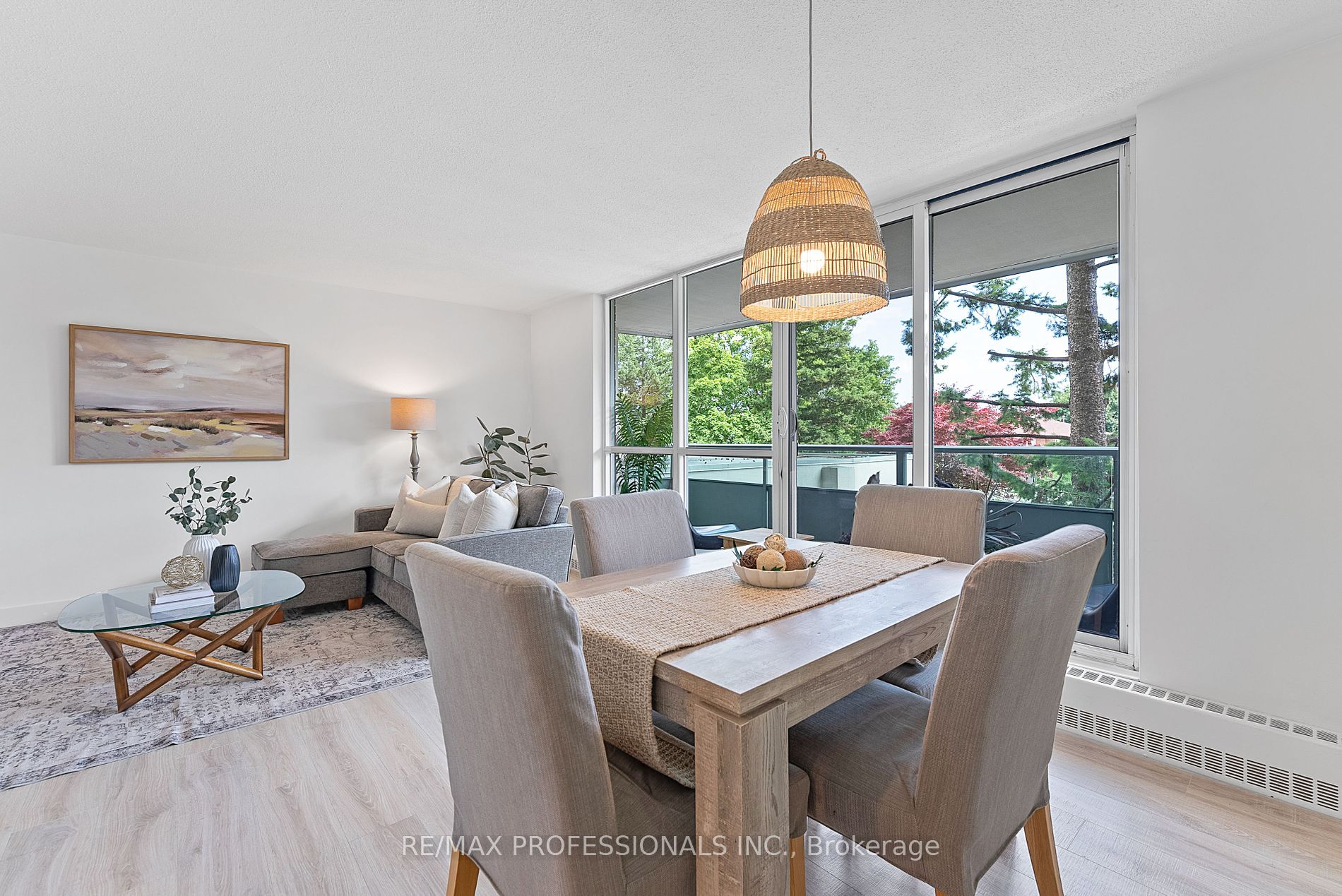 Welcome to 44 Longbourne Drive #207, a beautifully renovated, bright and airy 2 bedroom, 1.5 bathroom condo nestled in central Etobicoke. Flooded with natural light, this nearly 1,100 sf, sun-filled unit includes a massive open-concept living and dining room, perfect for entertaining, adorned with contemporary wide-plank floors, floor-to-ceiling windows and a walkout to a private, 110 sf south-facing balcony. The dreamy kitchen boasts stainless steel appliances, quartz counters, a chic backsplash, an oversized undermount sink, ceramic tile flooring, pot lights and plenty of smart storage. Two generous bedrooms including a serene primary retreat with a large walk-in closet and two oversized windows and an inviting second bedroom with a large double closet. Enjoy the convenience of a thoughtfully renovated 4-piece main bathroom and a stylish powder room. Ample storage throughout includes a dedicated 11′ storage room with built-ins, a double coat closet and a linen closet. One underground parking spot and one locker included! Well-managed and maintained low-rise building with bright, updated common areas, hallways and lobby. High reserve fund! Residents can enjoy a host of amenities including a new sauna, an indoor pool, a well-equipped gym, a party room, bike storage and ample visitor parking. Great central location adjacent to Westgrove Park, offering a playground, outdoor pool, and skating rink! Near Richview Park, Martinway and Richview Plazas, Metro and local schools. With the TTC at your doorstep and quick access to major highways and Pearson Airport, this property offers exceptional value not to be missed!