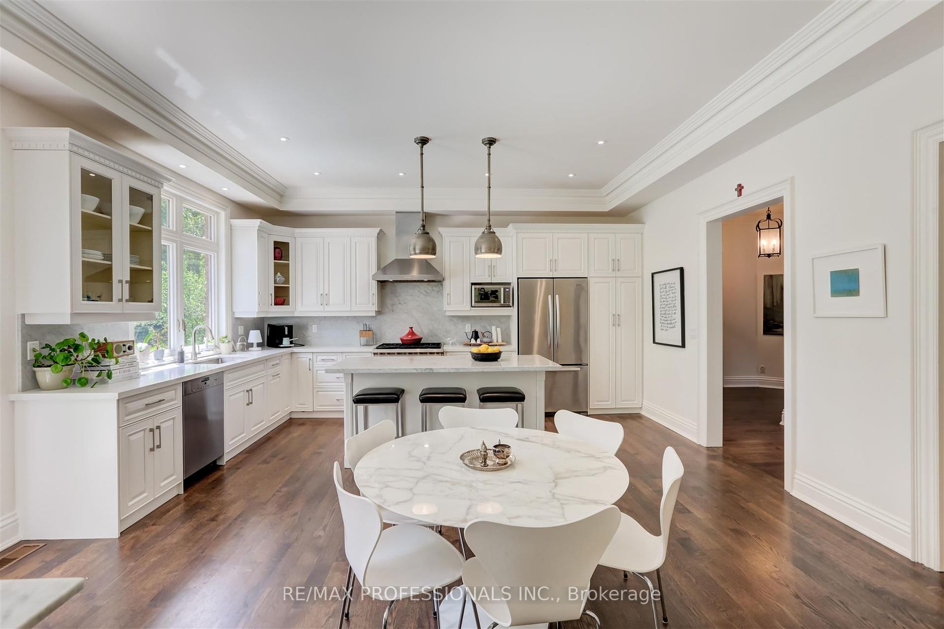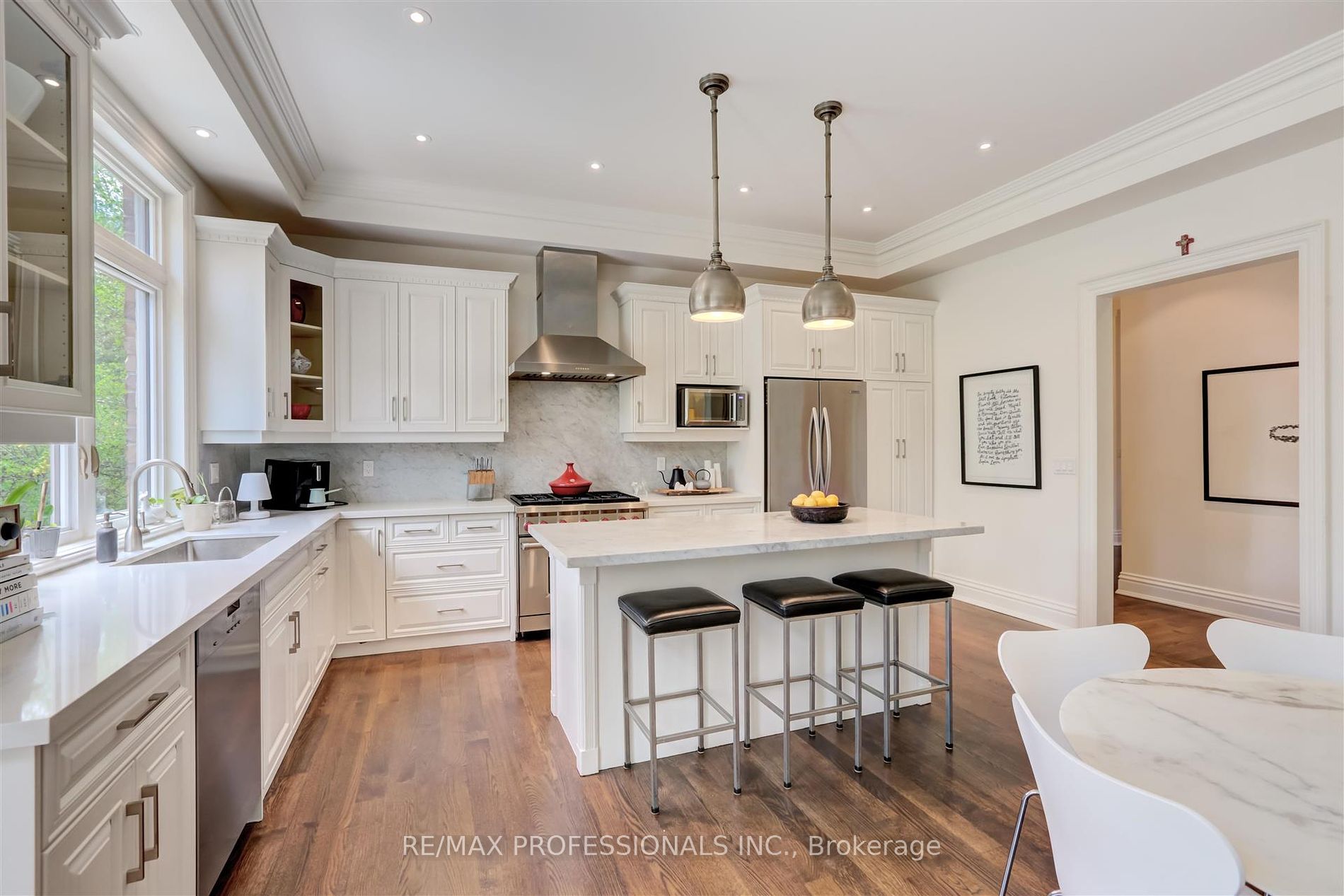 Fabulous Chestnut Hills custom home on a prime street. This spacious approx. 3750 sf home features four plus one bedrooms, 5 baths and 10′ ceilings on the main floor. A chefs eat-in kitchen combined with family room overlook the sunny, pool-sized landscaped south facing gardens and covered gazebo. The luxurious primary retreat with custom walk-in closet, 6 piece ensuite and yoga retreat/office area create a wonderful private space. A large lower level with rec room and bedroom plus ample storage provide 1700 sf of extra living space. It is a perfect house for families and entertaining. Walk to premium schools including ECI, Humber Valley, KCS, parks and transit