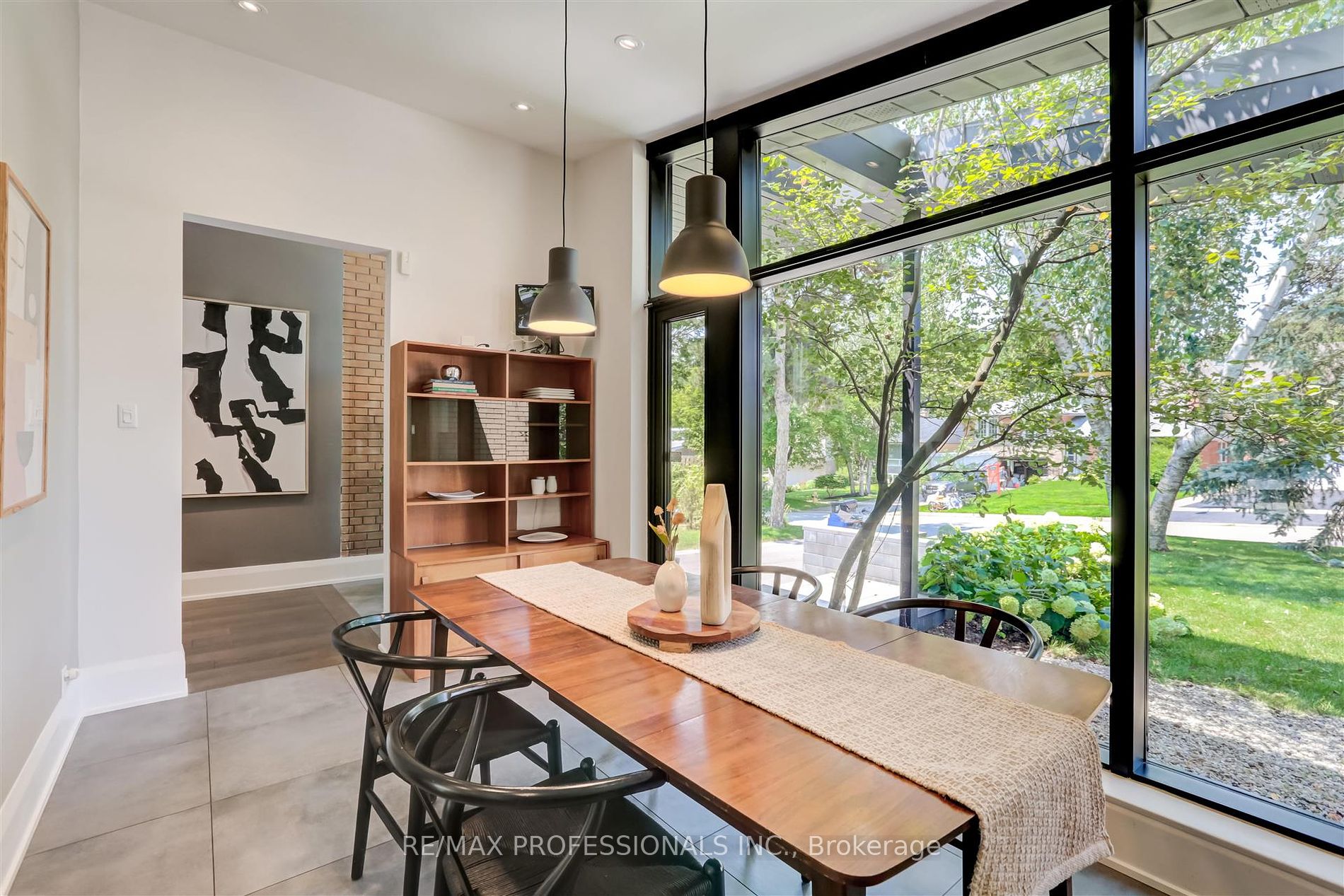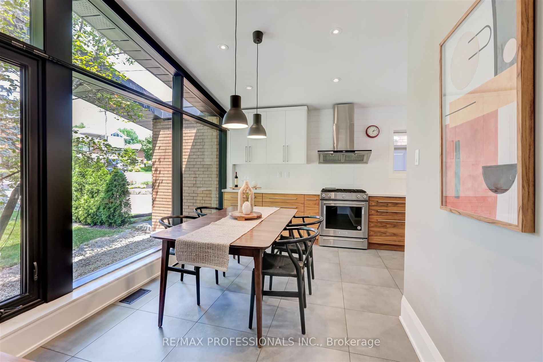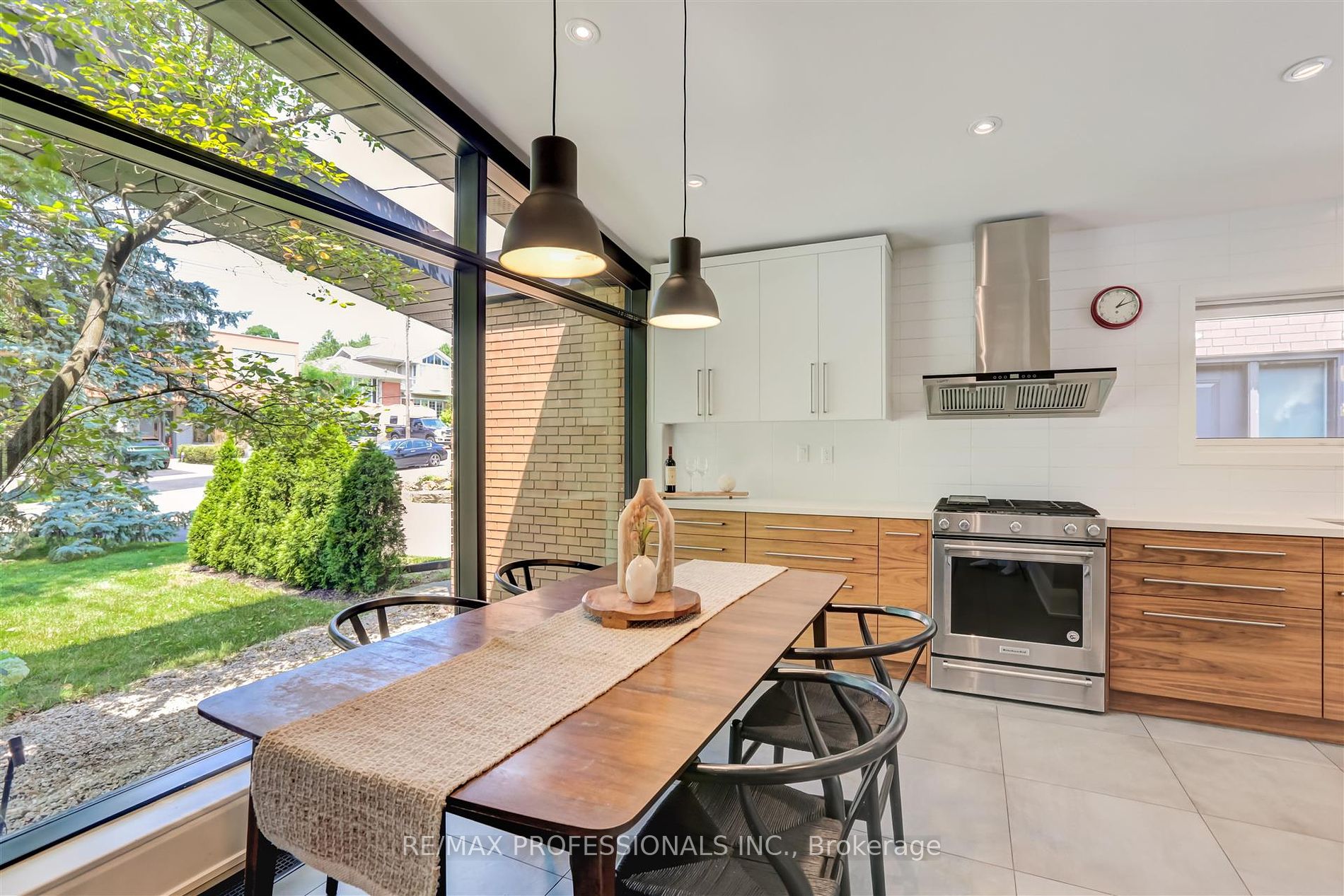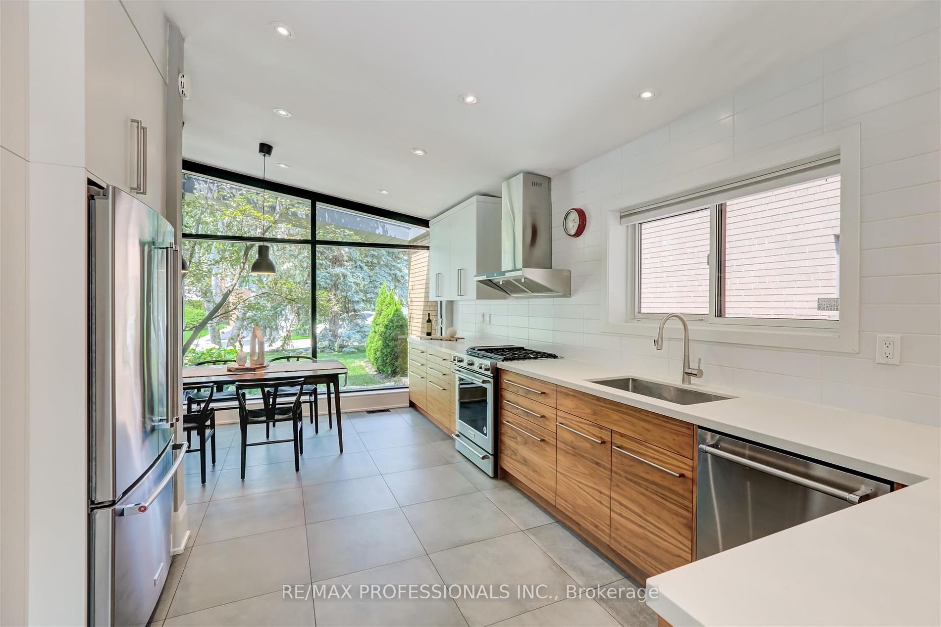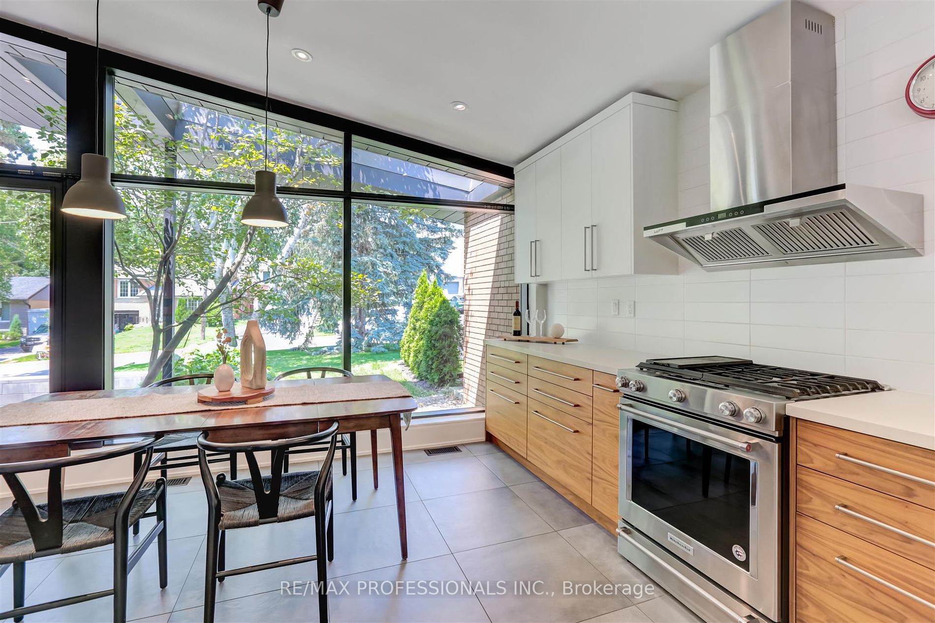 Experience the allure of true mid-century modern design in this exquisite residence, where clean lines, vaulted ceilings, and expansive windows seamlessly integrate indoor and outdoor spaces. This fully renovated home features 4+1 bedrooms, offering both elegance and functionality.The large eat-in kitchen spans over 20 feet of quartz countertops, bathed in natural light from floor-to-ceiling windows overlooking a serene front courtyard. An open concept main living and dining area centers around a fireplace, boasting soaring ceilings and further floor-to-ceiling windows that frame views of the backyard patio.A spacious family room, complete with a cozy wood-burning fireplace, provides direct access to both the backyard and a convenient two-car garage. The primary bedroom suite includes an ensuite bath and walk-in closet, while three additional family bedrooms and a shared bath complete the upper level.Outside, a generous backyard patio invites family gatherings and entertaining amidst lush surroundings. Ideally located in Sunnylea, renowned for its family-friendly atmosphere, residents enjoy proximity to parks, walking trails, shopping, dining, and effortless access to transportation, including the Subway. Situated within one of Etobicoke’s top school districts, this home offers a blend of style, convenience, and community.