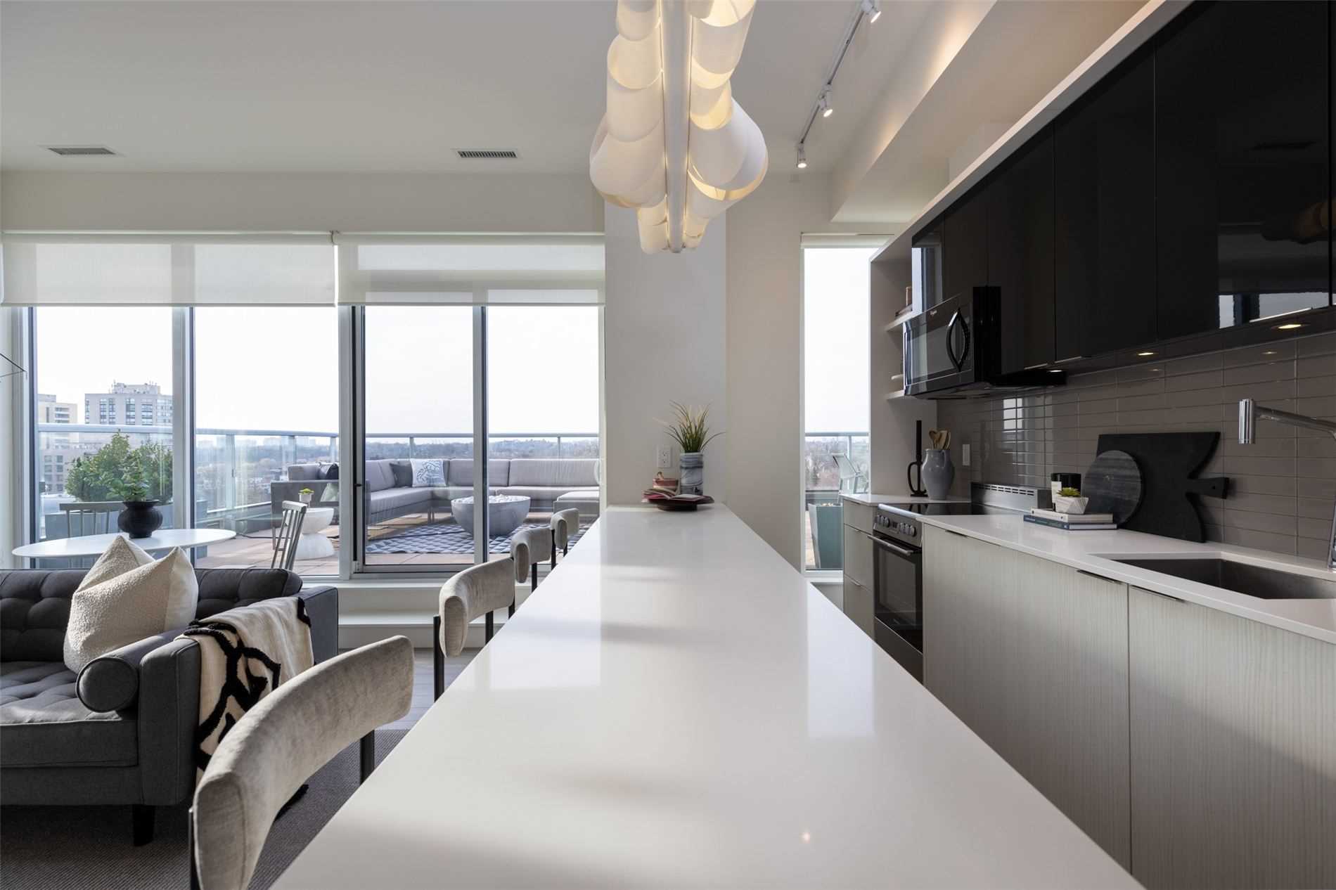 Luxury Living At The Code In Forest Hill. This Corner Penthouse Boasts Floor To Ceiling Windows And Unobstructed Nw Views From The 500 Sq.Ft. Terrace. Professionally Redesigned Above And Beyond Builder Specs By Chris Lischkoff. Open Concept 2Br 2Wr, Custom Floor Pan, Primary Br Has Separate Climate Ctrl, Built-In Cabinetry, Extended Kit.Island,Modified Kitchen Cabinets, Custom Window Treatments.Located Minutes Away From Downtown, 23 Acre Park, Dog Park, Swc Tennis Club, Ttc, Restaurants, Forest Hill Village, Loblaws. Second Bedroom Is Easily Converted Into An Office.Truly One Of A Kind