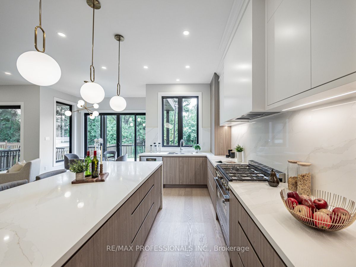 Welcome to 7 Charleston Rd, a brand-new luxury home in the heart of Etobicoke, offering over 4,000 sq. ft. of exquisite living space. This stunning residence features 4 spacious bedrooms and 5 elegant bathrooms, including a luxurious primary suite with a spa-like 5-piece ensuite. The main floor boasts 10′ ceilings, engineered White oak hardwood floors, and pot lights throughout, creating a warm and inviting ambiance. The designer kitchen is a chefs dream, complete with large island, breakfast bar, and a butlers pantry, perfect for both everyday living and entertaining. Step out from the kitchen or family room onto a large, covered deck, ideal for outdoor dining and relaxation. The beautifully finished basement offers ample storage space and endless possibilites for recreation or home office use. The home also features an elegant oak staircase and a pool – sized backyard, providing plenty of space for outdoor activities. This property is a true gem, offering luxury, comfort, and style in one of Etobicoke’s most sought – after neighbourhoods. Don’t miss your chance to call this dream home your own !
