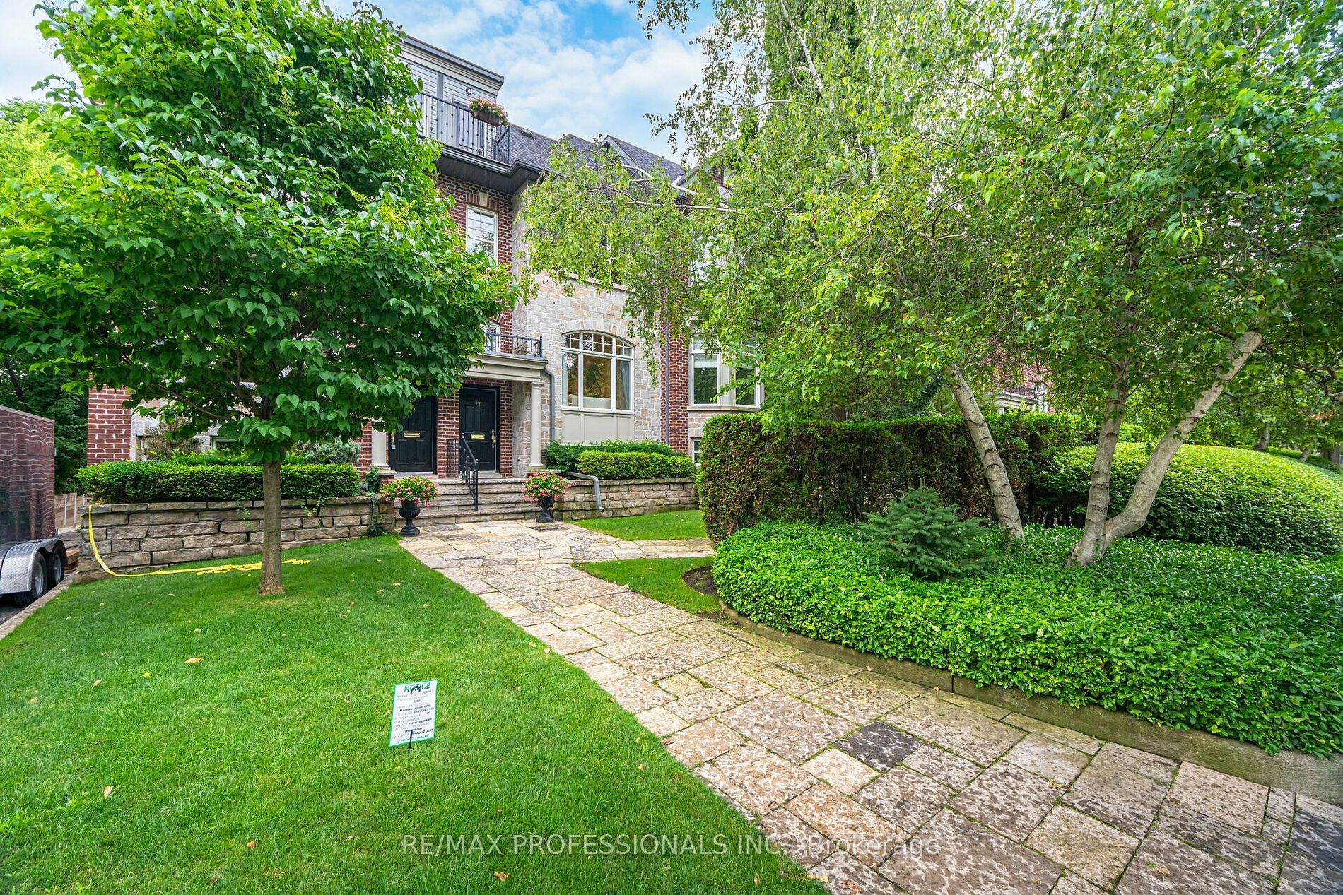 Luxurious “New York Brownstone” inspired, 3-Storey Brick & Stone built townhome is nestled in private Sunnylea enclave. With 2,700 sq ft of living space, this stunning home offers endless opportunities. Chef-styled kitchen featuring heated floor, food-prep-sized centre island, Breakfast-bar, plenty of cupboard space, Caesar-stone counters, S/S appliances, floor to ceiling windows, w/o to spacious & tranquil terrace c/w gas hook-up for BBQ & fire-table. Terrace awning offers privacy & chance to tuck in from rain or sunshine. Living Rm boasts, airy 9 foot ceilings, hardwood floors, Gas Fireplace, O/L front garden. Elegant dining Rm has space for table of 10. Primary Suite encompasses entire 3rd level with W/O to treetop deck, 5-pc bath, soaker tub, double vanity, W/I closet. Two spacious bedrms on 2nd Floor with 4-Pc bath. Finished Bsmt has above-grade windows, 2-Pc bath, access to 2 Car garage. Close to parks, Humber River trails, top schools, Subway, GO, Kingsway Village dining & shops.