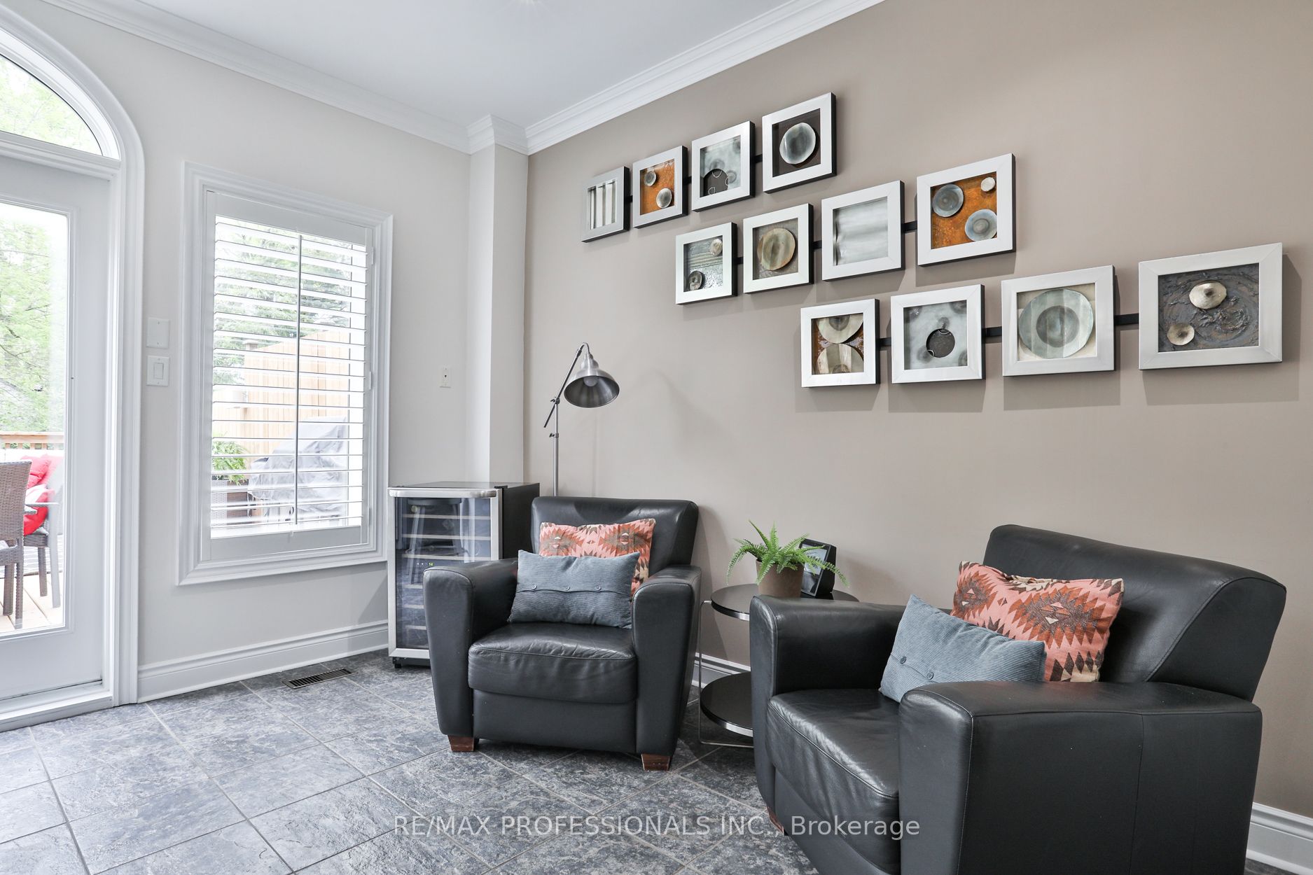 Nestled in the heart of sought-after south Etobicoke, this exceptional Dunpar-built freehold executive townhome offers a care-free living experience. Step into the inviting main floor, where a graceful open-concept design greets you, seamlessly blending the living area, complete with a cozy gas fireplace, and the sophisticated dining space. Featuring soaring ceilings, hardwood floors, crown moulding, pot lights, California shutters, and built-in speakers, every detail exudes elegance. Transition effortlessly into the modern chef’s kitchen, boasting a breakfast area, breakfast bar, centre island, high-end stainless steel appliances, stone counters, and double French doors leading to a private deck, perfect for entertaining guests. Upstairs, discover two bedrooms and a luxurious five-piece bathroom with dual sinks and a soaker tub, alongside a full laundry room equipped with stainless steel sink, ceramic backsplash, folding counter, front load washer & dryer, and ample storage. Escape to the exclusive primary suite on the third level, featuring hardwood floors, a walk-in closet with custom organizers, and a walk-out to the balcony. Indulge in the spa-like 5-piece ensuite bath with a separate jetted tub and glass-enclosed shower, complemented by a second balcony walk-out. Descend to the finished basement, offering a spacious rec room with built-in speakers, a convenient 2-piece bath, custom storage, and direct access to the double-car (side x side) garage. Conveniently situated with excellent shopping and transit options nearby (including GO), as well as quick access to highways, downtown, Kingsway, and Bloor West Village. Excellent school district (Norseman/ECI), and walking distance to ravine trails, lakefront parks, and neighbouring High Park.