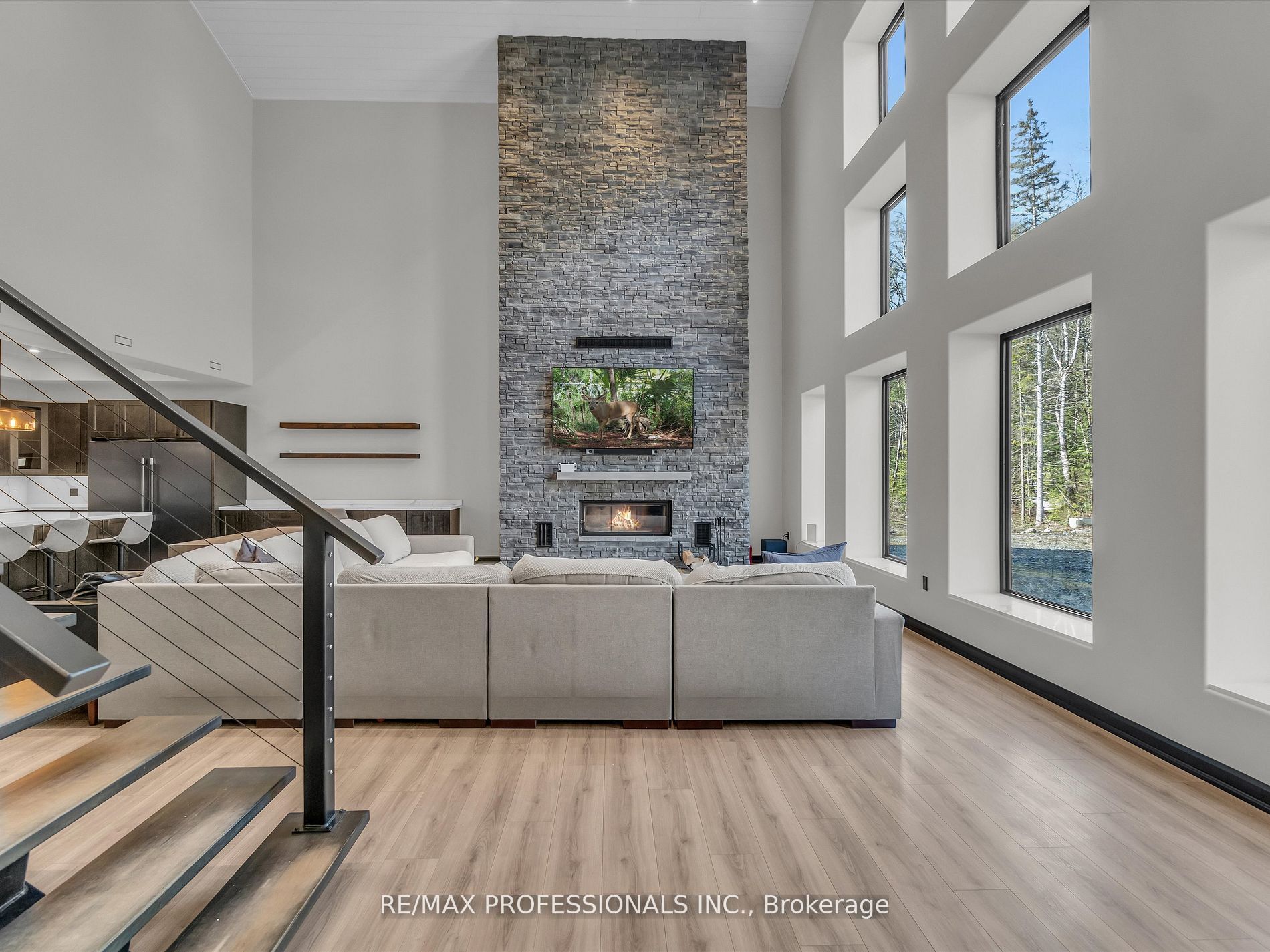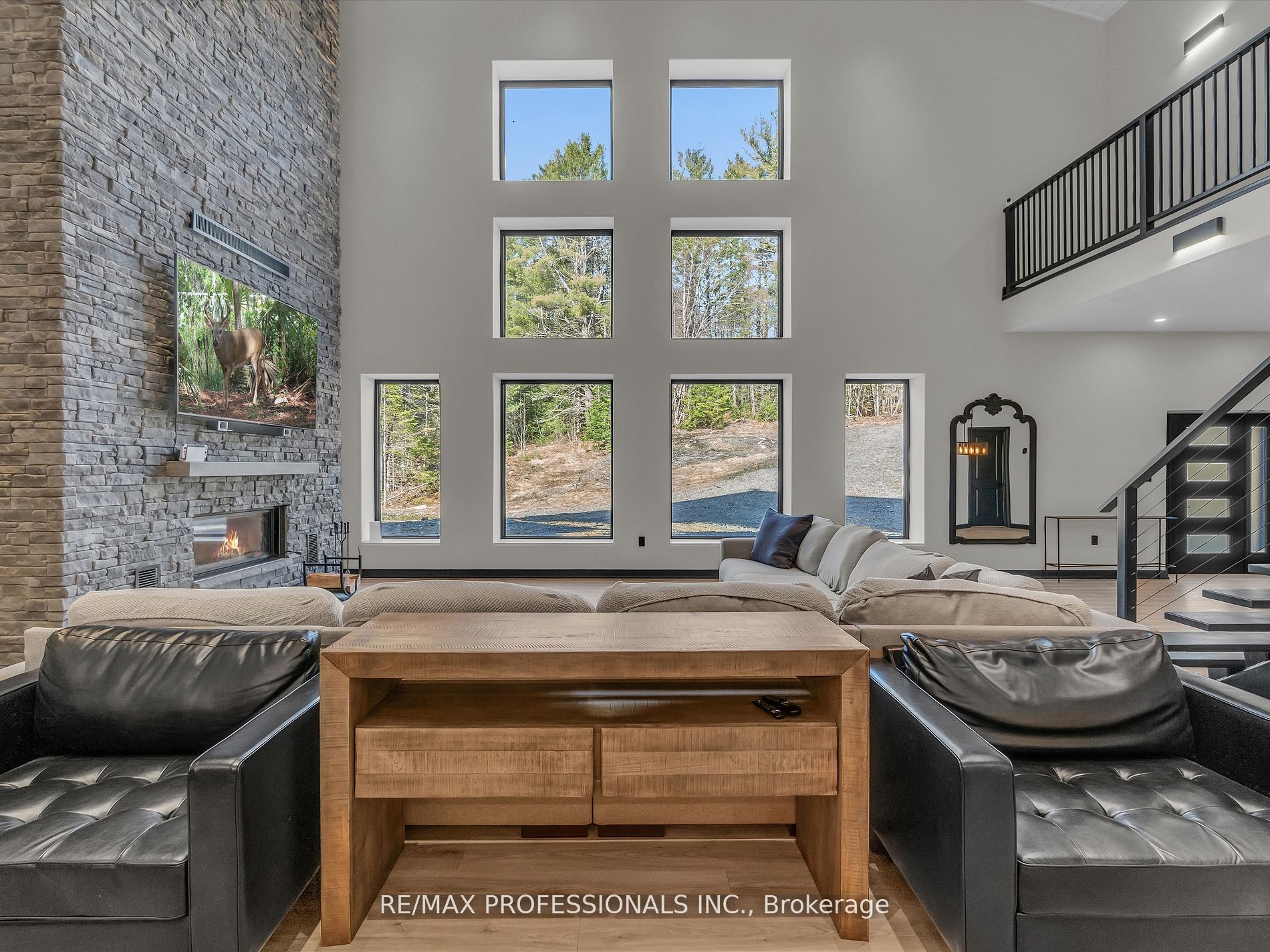 Discover Your Dream Muskoka Retreat! Welcome to this one-of-a-kind 5 bedroom, 5 bathroom 120ft x 80ft compound, nestled on over 8 acres of pristine land in Lake of Bays, perfectly located just minutes away from the charming town of Baysville, where you can easily dock your boat and enjoy Muskoka’s second largest lake! This stunning property offers a unique blend of hobby farm potential and live/work opportunities in the heart of beautiful Muskoka, only a short drive from Bracebridge and Huntsville. Highlights include: A serene 0.5 acre pond fed by fresh natural springs, all framed by a breathtaking granite backdrop, 26Kw backup generator ensuring your comfort with auto on/off capability, cozy, energy-efficient in-floor heating powered by two 200k NTI boilers with state-of-the-art floor sensors and zoning controls, an impressive 9,000 Sq/ft Unilock patio featuring a built-in BBQ, perfect for entertaining! Inside the luxury continues with a gorgeous interior. Step inside to find a grand open-concept layout with towering 45-foot ceilings, complemented by an exquisite chefs kitchen equipped with triple ovens, a professional gas stove, and an oversized fridge/freezer – all anchored by a massive kitchen island! The primary suite offers a personal sanctuary with a fireplace, walk-in closet, and a spa-like bathroom featuring a freestanding tub overlooking natures beauty. Plus, there’s a wheelchair accessible main floor bedroom/ensuite for convenience! Additional Features: 3 industrial garage doors for easy access to your workspace, a sophisticated camera system for peace of mind, and two cellular boosters ensuring crystal-clear LTE, Starlink internet with impressive speeds of 200 down and 50 up, keeping you connected while you enjoy your private trails and every outdoor adventure! Whether you are seeking a peaceful retreat or a dynamic living-work space, this property is tailored for both leisure and productivity! Don’t miss the chance to experience this slice of paradise!