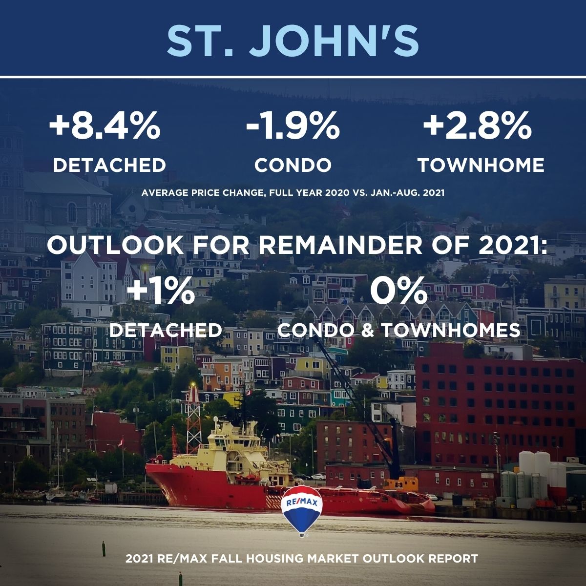 The 2021 RE/MAX Fall Housing Market Outlook Report includes data and insights from RE/MAX brokerages. RE/MAX brokers and agents are surveyed on market activity and local developments. Regional summaries with additional broker insights can be found at REMAX.ca. The fall outlook is based on predictions of RE/MAX brokers and agents. The overall outlook is based on the average of all regions surveyed, weighted by the number of transactions in each region.